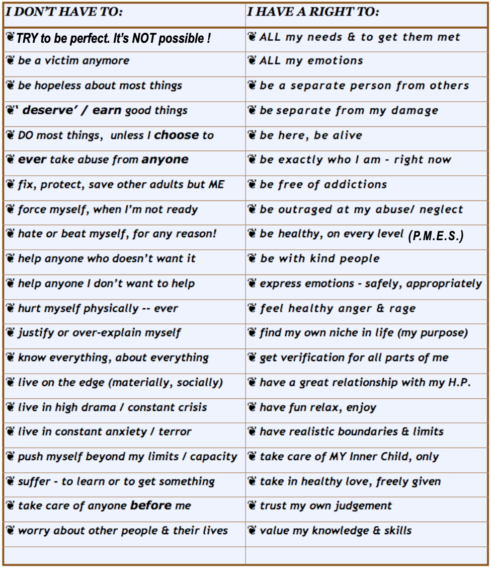 • The statements listed are sometimes called affirmations or mantra. ACoAs who are comfortable with the familiar ones – can use them if they resonate, since they ARE true. Whatever works to heal is valuable