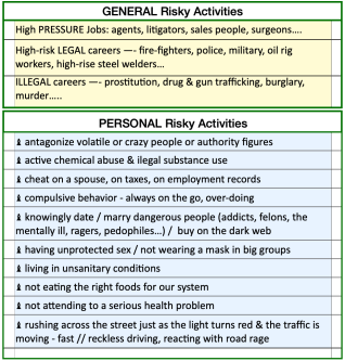 RISK-ADDICTED people are drawn to activities & decisions that promise a quick positive outcome that will be exciting, to help them forget themselves & get rid of unpleasant emotions. However, those who willingly participate in risky behavior court danger — prone to injury, disease, financial loss, incarceration & fatality. We can lose :