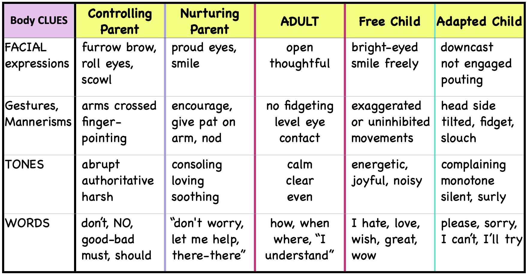 Trauma interferes with this integrative capacity, causing ES to become excluded, disorganizing the Self. The child’s experience of abusive caregivers is absorbed in a series of toxic Parent / Child ego states.