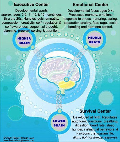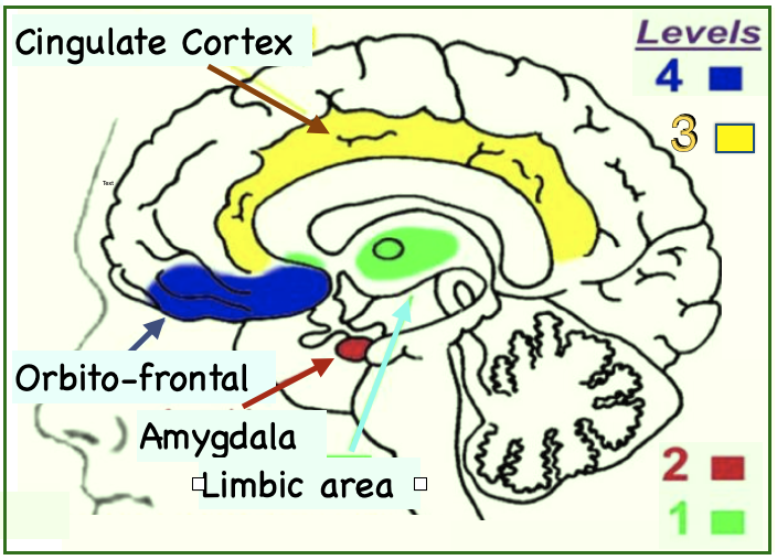 4. Conscious (highest, from the PFC) – gives us our Identity, ‘Who I am’. Also, the ability to quiet ourselves – to not ‘lose it’, stay upset for too long, or over-react.