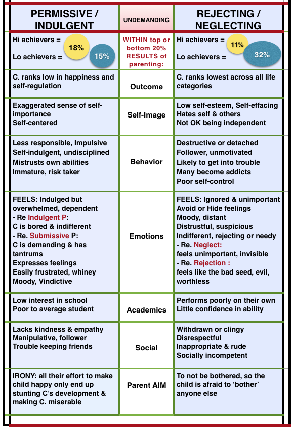 • Teens raised by indulgent parents – who tend to give their children lots of praise & warmth but do not teach them to monitor bad behavior nor about its consequences – were among the biggest abusers of alcohol (about 3x more likely than peers)
