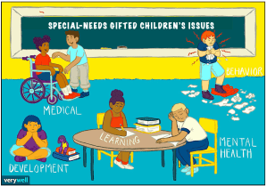 ‘Double-Labeled’ (‘Twice Exceptional / Dual diagnosis’) – are kids whose giftedness is masked by a physical or emotional handicap, or by learning disabilities such as ADD & Dyslexia, none of which impact actual capacity to think, but only the style.