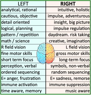 When talking about Intelligence it makes sense to start by looking at the 2 halves of the brain – the Right giving us our Creativity & the Left our Analytical abilities. This chart suggests the 2 sides contribute to the various types of Intelligences (I.) listed in the next few posts.