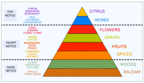 The “fragrance pyramid“ concept embodies the classic three-tiered French structure, where the denouement reveals distinct phases resembling a 3-D presentation. The tightest traditional perfume structures, the “chypre” is the harmonious blend, like a musical sonata, with a clear progression of themes, from elegantly sour to resinous/sweet, down to mossy/earthy, becoming more than the sum of their parts. (More….)