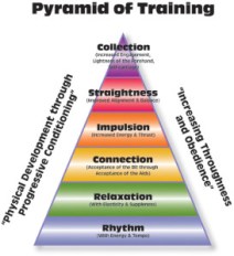 2) the aids for controlling your horse – with kids it’s usually on a lead line, with adults they usually ride independently – and teach the balanced seat as they go, typically just riding around the arena…