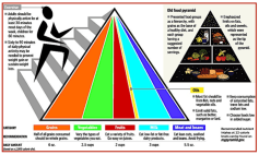 In 2005 the U.S. Department of Agriculture released a new food pyramid, which breaks food categories, into a spectrum to emphasize variety. It’s more flexible and accurate, understanding that one version can’t apply to everyone. What works will depend on a person’s overall lifestyle, how much exercise they get during a week, or if they’re trying to lose or gain weight. Exercise was introduced as a component of the food pyramid, & 12 individualized intake profiles were added.