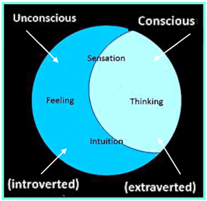 In the healthy person, the Unconscious Function (UF) is filtered through its corresponding Conscious Function (CF), because they’re less out of balance.