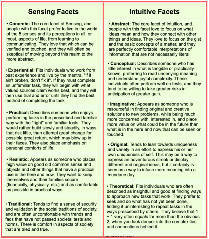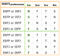 NOTE – Pairs of Types (the NFs, the STs….) have their preferences in the same order, but