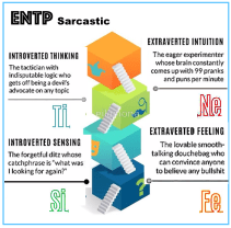Usually least preferred, here Si is centered on understanding the past & applying lessons to current experiences & future events. ENTPs are more likely to focus more on possibilities than actions, without considering how past events & patterns can actually help predict future outcomes in similar situations.