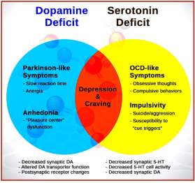 IMP: Serotonin levels can not be raised by oneself. It has to be elevated by positive feedback from the environment. This is important because Serotonin levels INcrease Dopamine levels (motivation).