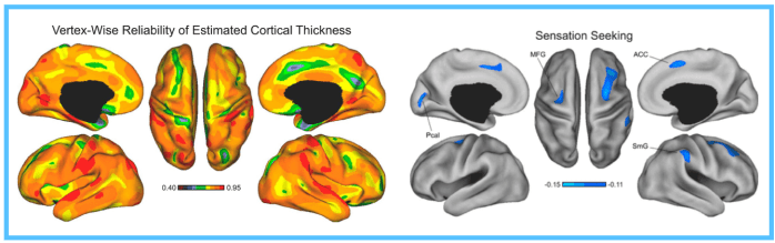 😈 Another study correlated Impulsivity with cortical thickness, the area needed for self-control. The thinner the tissue in the ‘front’ brain, the greater the sensation seeking. (More…. w/ images ▼)