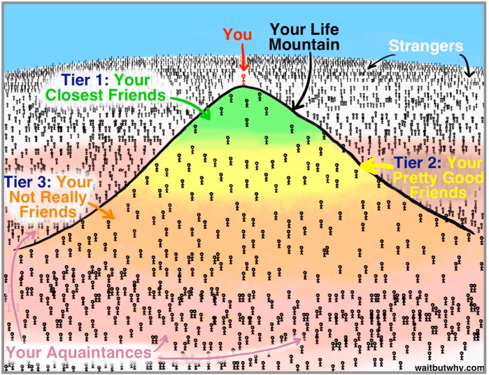 “Once student-life ends, the people in your life start to shake into more distinct tiers….. Whatever your particular mountain looks like, eventually the blur of youth is behind you, the dust has settled, & there you are living your life – when one day, usually around your mid or late 20s, it hits you: It’s not that easy to make friends anymore…”
