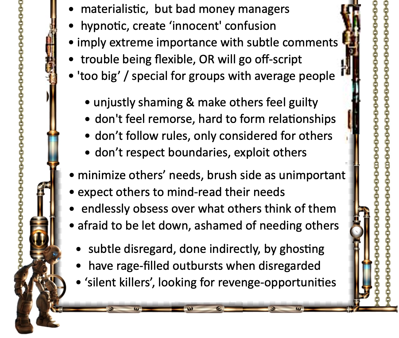 Many C-Ns seem gentle & humble. Some like to portray themselves as empathy itself, angels in human form – dedicated to the path of ‘enlightenment’. They can reel you in by appealing to your caring & empathy, & their lack of obvious arrogance can unfortunately numb your fears & suspicion.