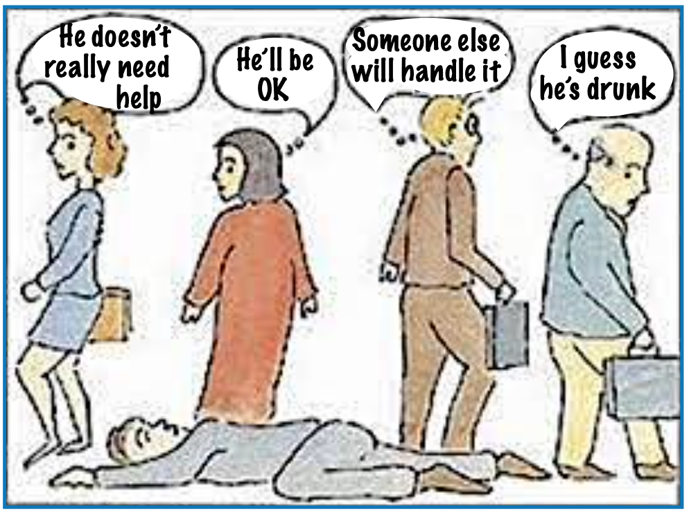 In the context of this series about Narcissism, bystanding refers to inter-personal relationships – neglecting to help or intervene in parent-child, child-child or adult-adult abuse & neglect situations (NOT as co-dependence)