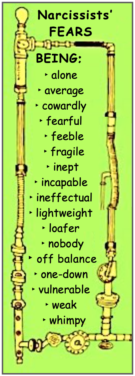 Generally, Ns are extremely uncomfortable when ‘normal’ people try to bond with them (neuro-typical significant others = NT S/Os). So Ns may not recognize that this is the “push” trigger that starts them devaluing the partner or friend, who will never be able to convince the NPD that their fear of intimacy is at the heart of their relationship-problems.