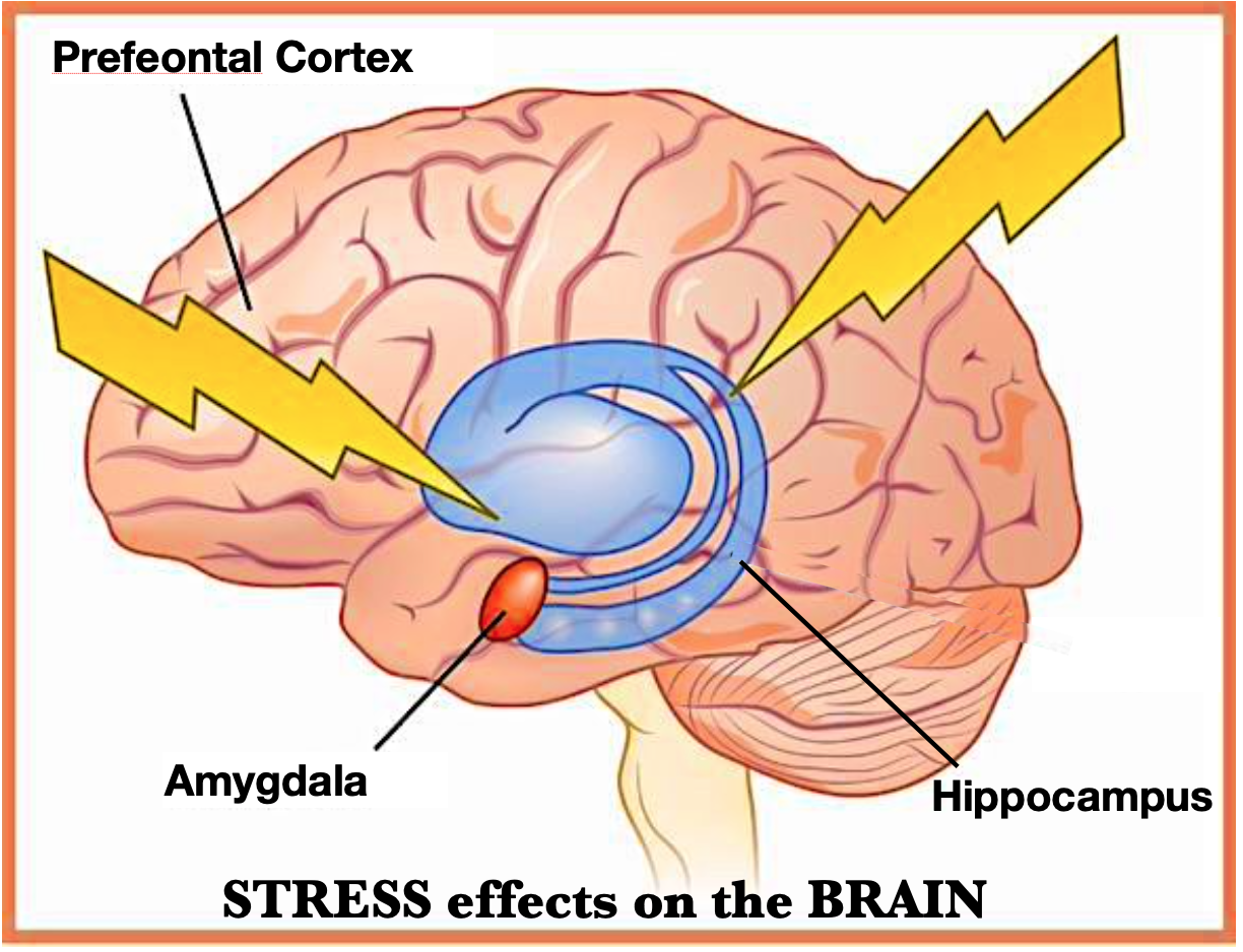 While it reduces the hippocampus, Cortisol stimulates the amygdala, so that traumatic stress increases its size, which manifests as mood disorders, decreased mental sharpness & restricting our ability to take in new information.