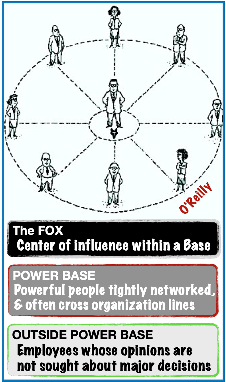 e. Resource – Neither Information nor Connection Power satisfactorily account for the power that certain ‘gatekeepers’ have in organizations. These people control access to wider resources: funds, equipment, supplies….. They’re often middle-ranking, junior or administrative colleagues with little legitimate power, nevertheless wield Resource Power by proxy, to meet their need for control in their workplace.