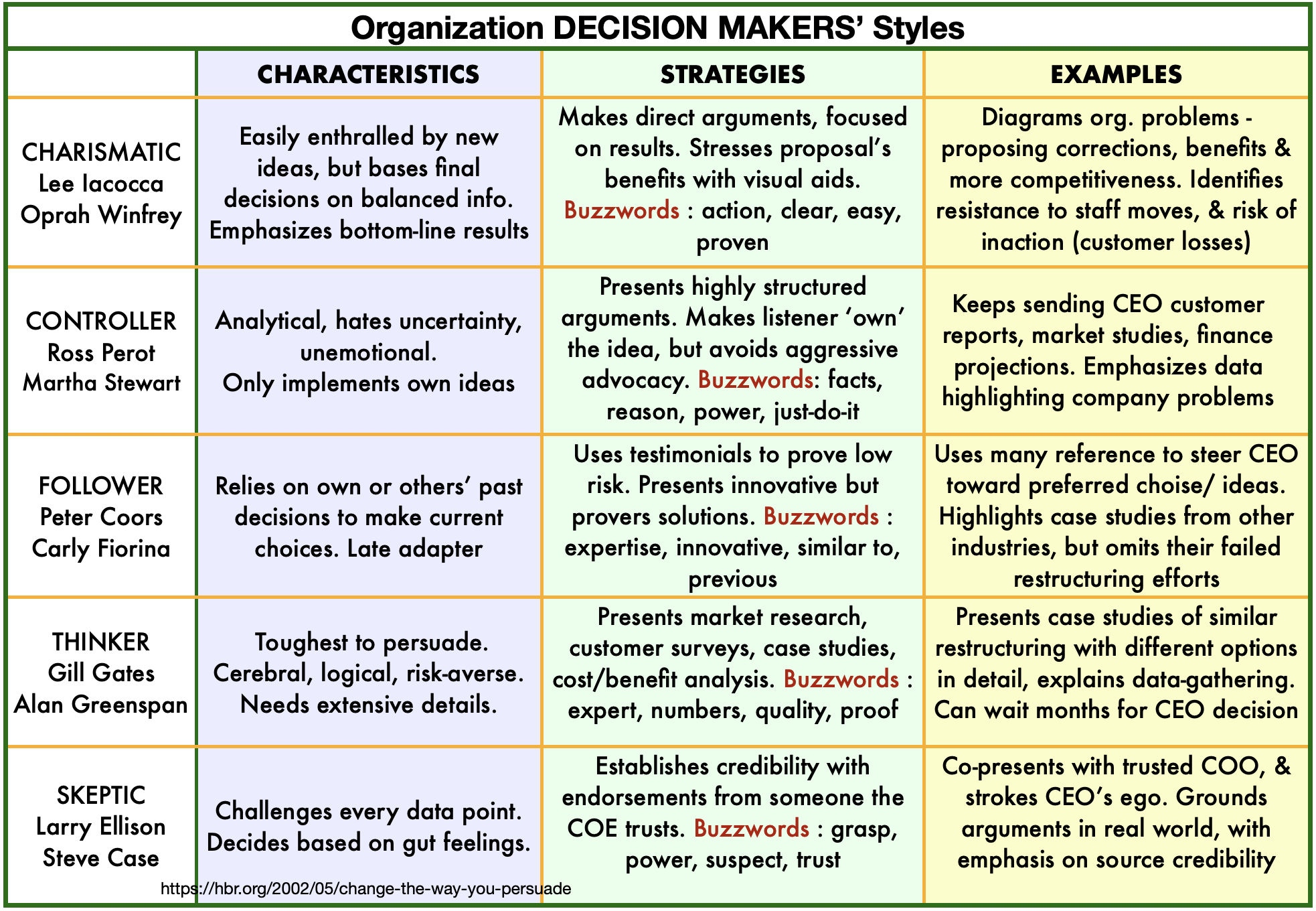 However, people can greatly improve their chances of having a proposal succeed by identifying who the chief decision-maker is they’re trying to persuade, & then tailoring their arguments to fit that executive’s style.” (More….)