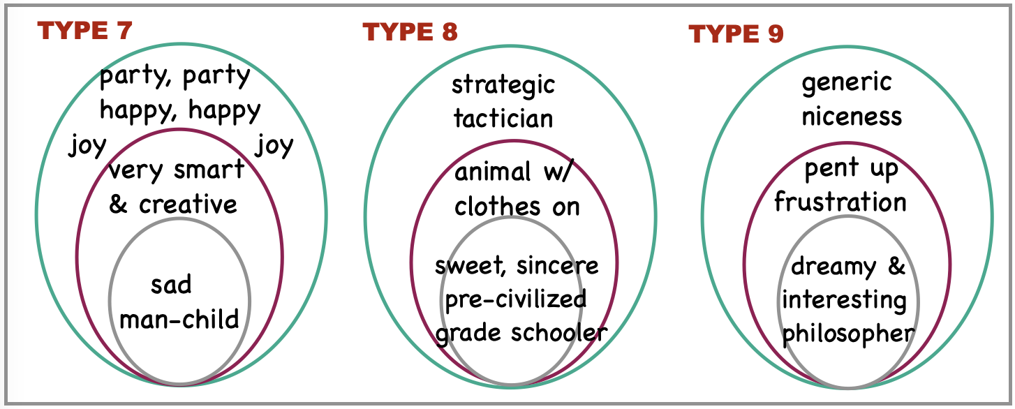 Until that egocentricity is set aside, we see all of life through the distorted lens of self-interest. The 9 Enna-types each have their own primary weakness – the Biblical ‘deadly sins’ that keep tripping us up.”