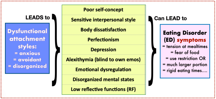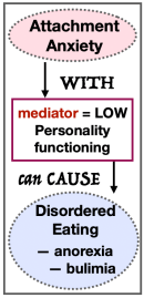 A review of 70 studies about ED identified 3 personality facets – Trust, Anxiety, Depression – that share the most variance (highly similar scores) with general psycho-pathology. ED symptoms are a result of combining :