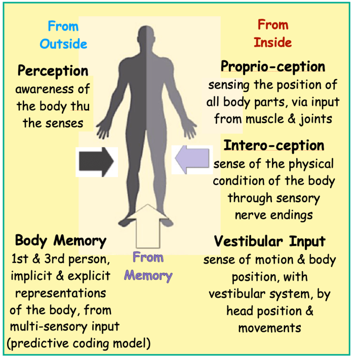 🧍🏽♂️ Interoception : the ability to be aware of internal sensations in the body, including heart rate, respiration, hunger, fullness, temperature, & pain, as well as emotion sensations