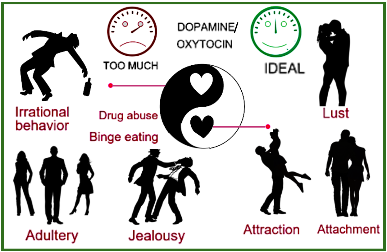 Although these effects may be a good things for monogamy, too much of it can cause the person – whose brain had been chemical hijacked – to dissociate from their environment, & act wild & reckless.