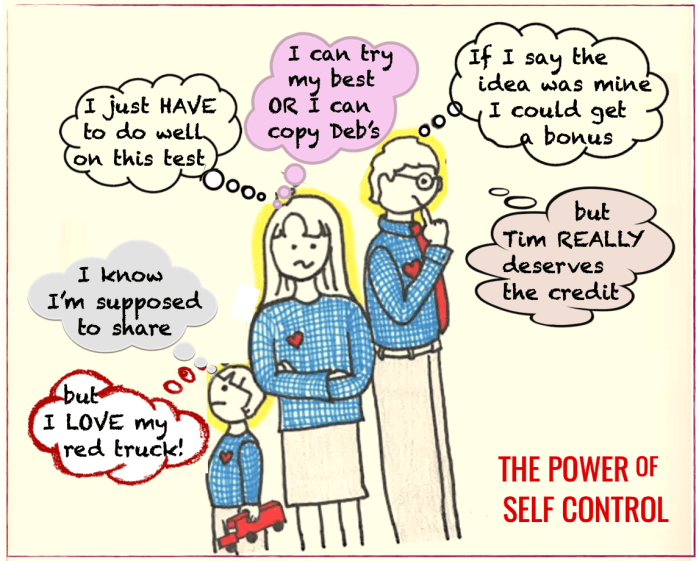 HEALTHY self-control is a fundamental human capacity, but must be learned, so Self-regulation (S-R) is a major developmental task of childhood. Ideally, the adults act as role models, providing a psychological framework for the child’s internal ability to regulate.