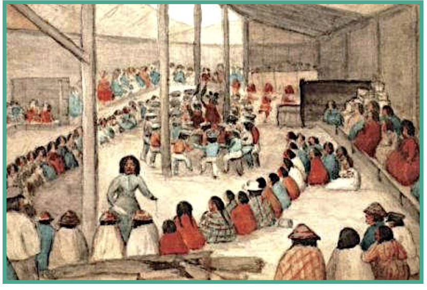 Because the exchange of gifts was so important in establishing a leader’s social rank, potlach often spiraled out of control as the presents became progressively more lavish, with tribes putting on larger, grander feasts & celebrations to out-do each other.