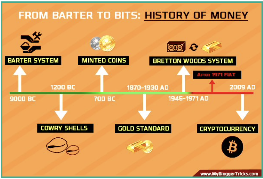 🏧 The Present: Forms of money have continually evolved since the days when people accepted seashells for payment, as evidenced by the new $100 U.S. Ben Franklin bill. A gold standard existed until the arrival of fiat currency.