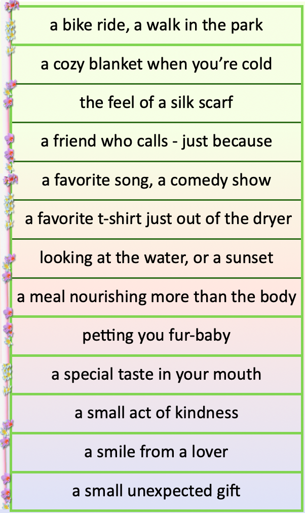 These moments stitch together a new foundation to support us – where fear once lived. Our marvelous nervous system is designed to help. Safety Signals create micro-adjustments to it that had been shaped by unpredictability. Treat yours with respect : don’t blow its circuits with worry & anxiety. Find ways to slow down, calm, & restore. It will pay off.