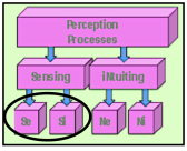 S – SENSING (Simplicity) S-types gather data in the physical world, through the 5 senses & concrete details. Info is to be experienced.
