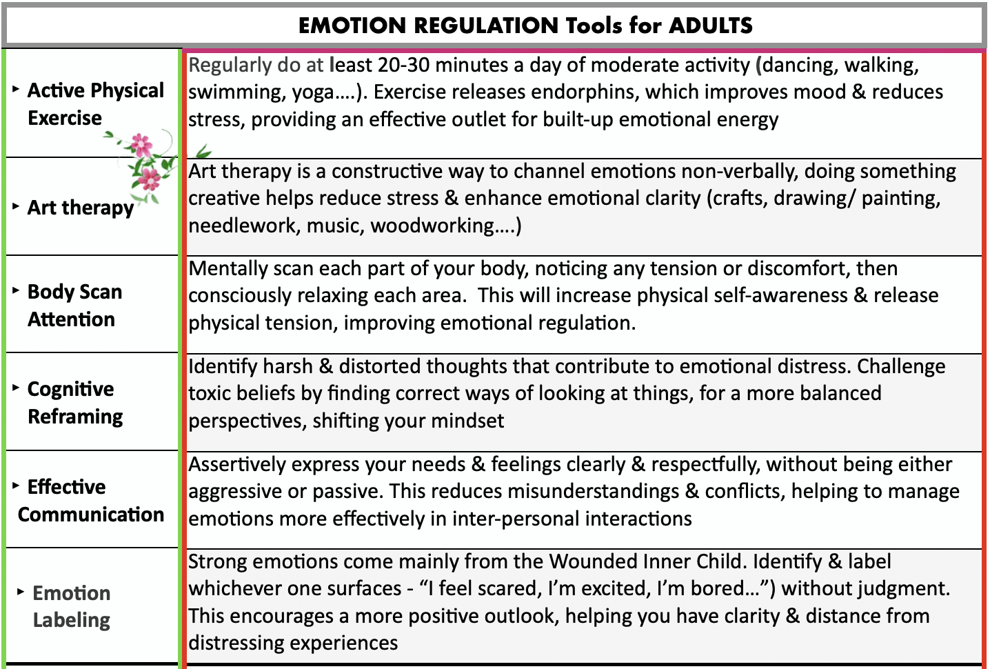 It’s crucial to develop good coping skills to deal with uncomfortable emotions (anger, anxiety, sadness….). Emotional s-c includes the internal ability to gently comfort oneself, along with identifying & coping with past triggers & present stressors.