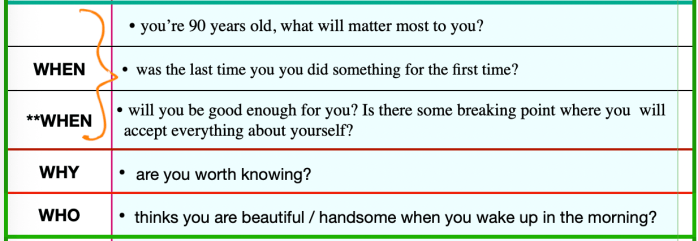 Become mindful of areas of life you’ve previous ignored, & consider what you’ll need tp do fill in those blanks