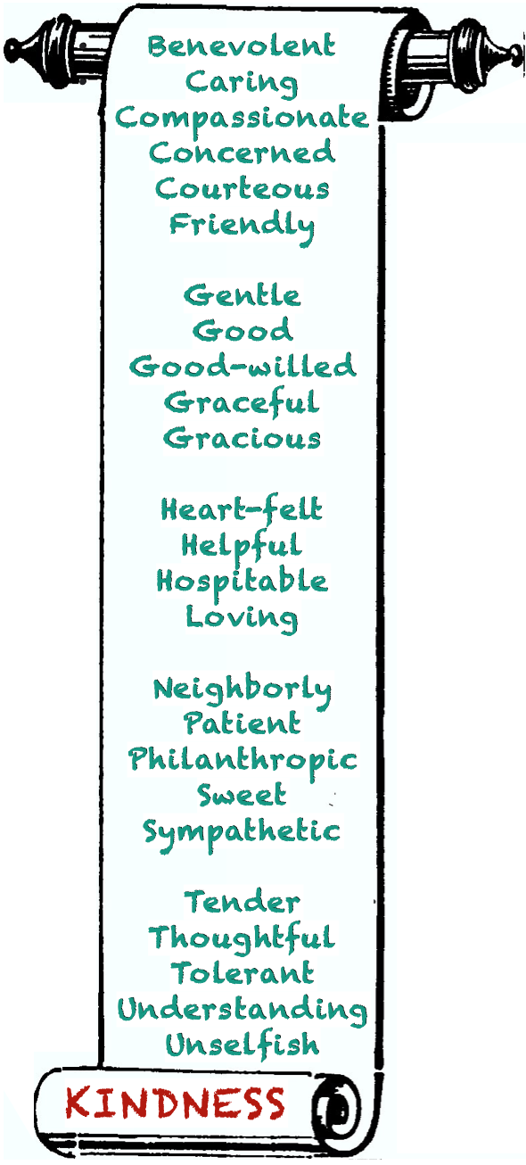 DEF:  KINDNESS – The quality of being considerate, friendly & generous