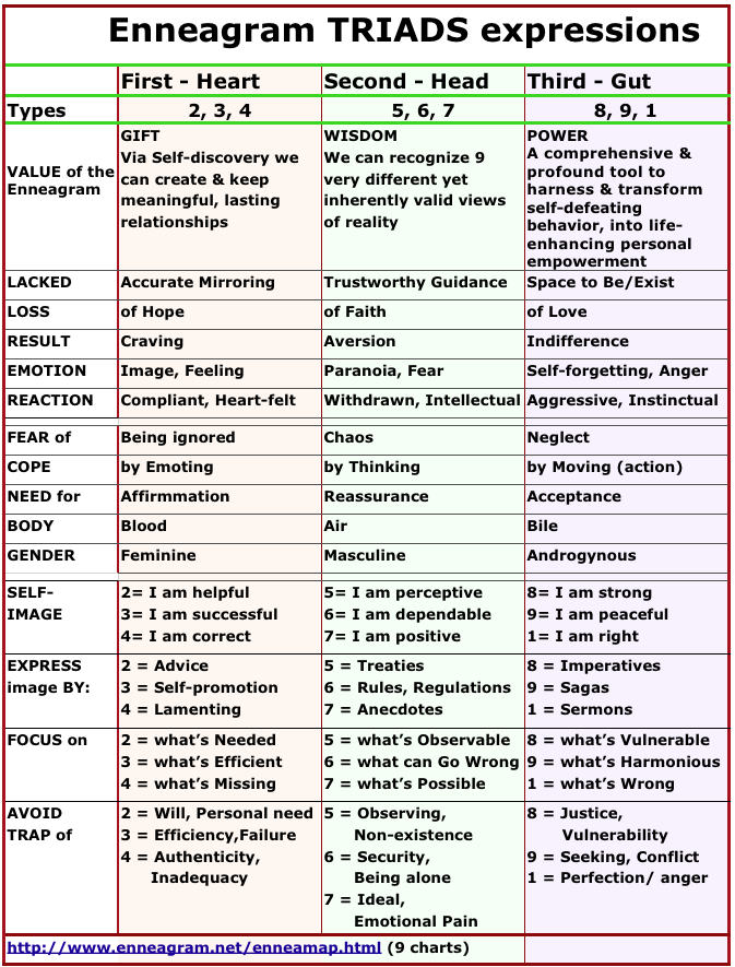 ❖ 234s long for a sense of identity, of figuring out “Who am I?”. Instead of going inward for this information, their main attention is on getting Affirmation From Others, especially those they feel close to, to the point of side-lining their own deepest needs. Total reliance on validation from others can lead to only being able to see themselves thru others’ eyes, unreliable at best, or to low self-esteem & possibly despair. It’s also called the “image” triad, because of a concern with how they are ‘seen’